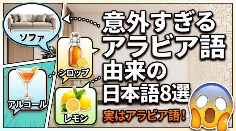 日常使われている日本語の単語の中で、実はアラビア語が由来の単語がその詳細付きでわかります。