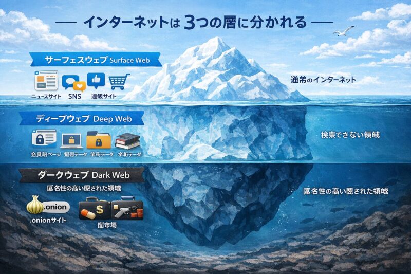 そのため、「ダークウェブ=特定の危険サイト」というよりも、匿名性を重視した通信環境全体の総称として捉える方が現実に近いと言えます。